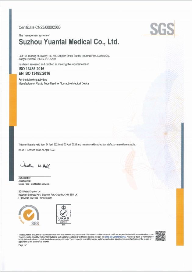 圆太医疗生产的导管以其极稳定的生产工艺、精密的在线控制以及严格的品质管控为特色,确保了每批次产品都能达到极高的一致性。公司始终秉承高质量、高效率、高性价比的原则,并致力于提供优质的专业服务,完美满足现代化生产的严苛需求。